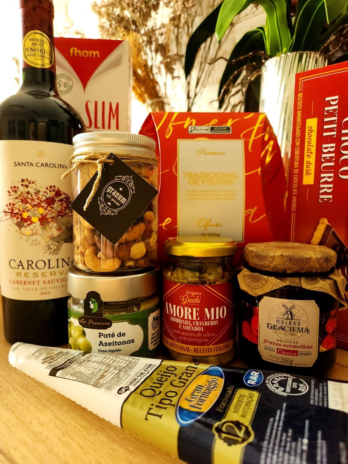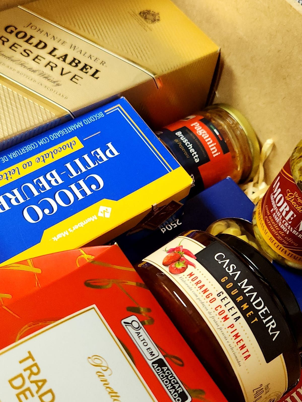 Geleias, Antepastos, Nuts, Panetones, Azeites, Torradas, Charcutaria, Vinhos, Espumantes, Whisky